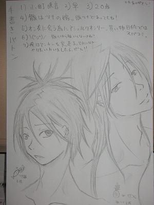 で、自分の作品が更新停滞しすぎなので、せめてもと思い夏コミ前くらいにやった手書きバトンを晒しておきます・・・。